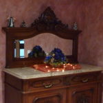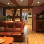 Le séjour est la pièce maîtresse du gîte qui a été rénové avec l’esprit de conservation du style traditionnel des maisons alsaciennes XVII éme et fait ressortir les poutres de la structure. Son plafond bas est également typique des constructions de l’époque. C’est une pièce que nous avons conçu pour être chaleureuse et confortable avec ses fauteuils en cuir et meubles anciens. Elle est équipée d’une télévision.